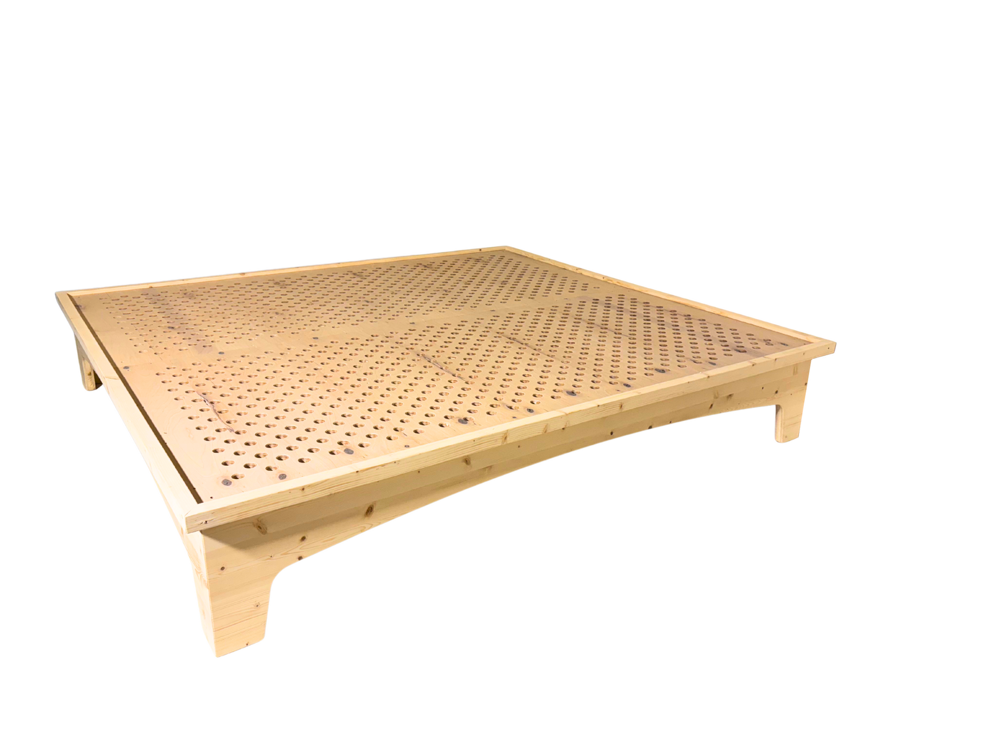 Das Bett besteht aus ein bis zwei Lattenrosten, sowie aus zwei Längsteilen und zwei individuellen Breitteilen. Die Längs- und Breitteile dienen nicht nur als Auflagefläche für den Lattenrost, sondern dienen gleichzeitig als Standbeine des Bettes.