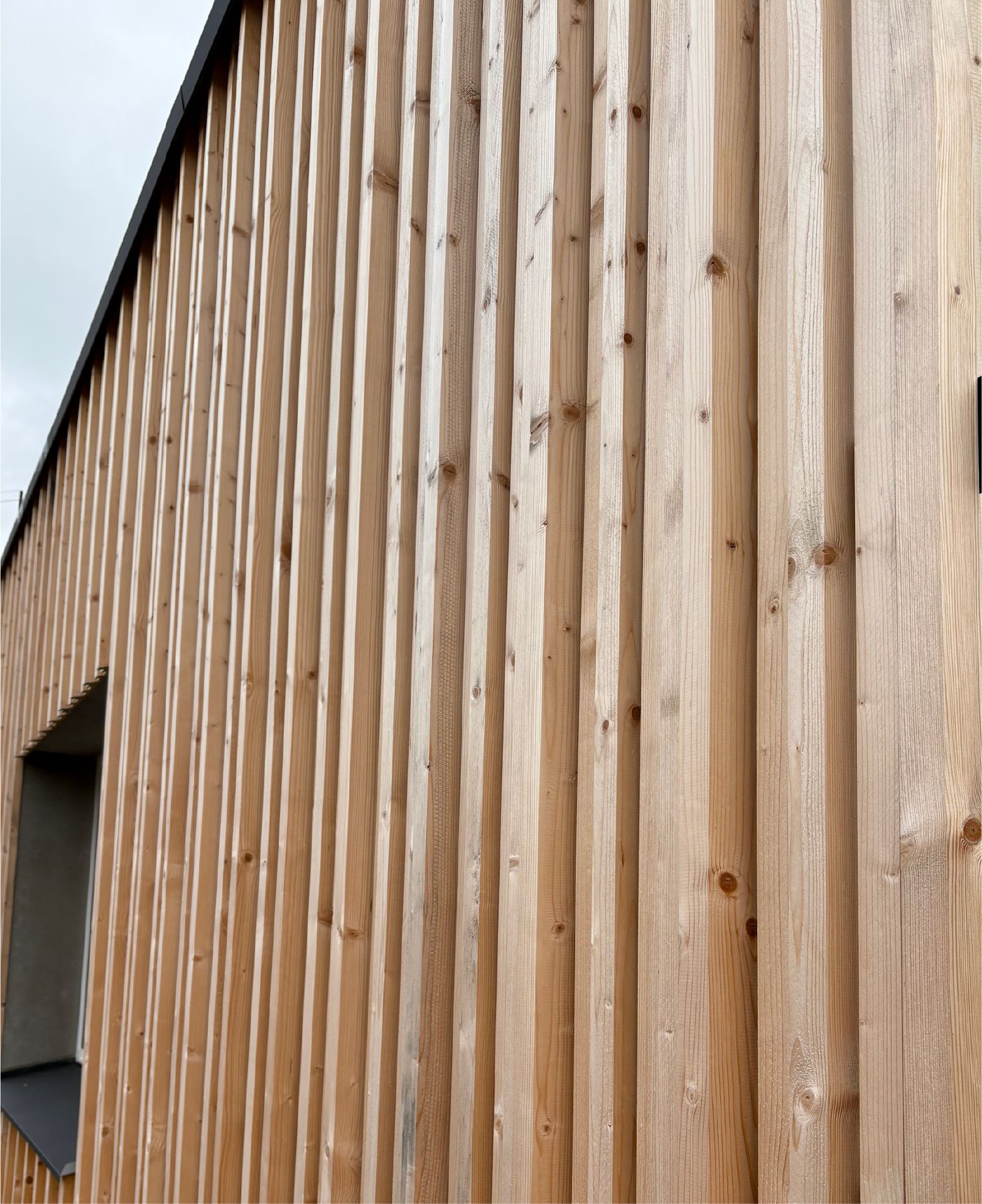 Unsere aufsehenerregende Fassadenvariante mit unterschiedlich tiefen, gehobelten Fassadenleisten. Diese werden mit einem einheitlichen Abstand zu bis zu 1200 mm breiten Modulen gefertigt. Der Zusammenhalt wird durch dahinterliegende Horizontallatten gewährleistet und ermöglicht eine Montage ohne sichtbare Verschraubung. Die maximale Produktionslänge liegt bei 6000 mm. Die Fassade kann ideal für individuelle hinterlüftete Fassadenprojekte eingesetzt werden.
